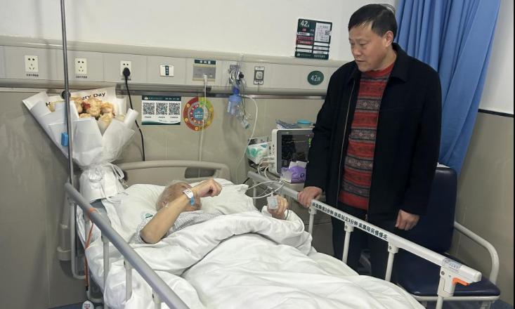 退休教师聂绪成因病住院,学院党委书记杨云与工会主席范嗣强第一时间前往医院探望,代表学院全体师生向他致以诚挚的问候,并送上鲜花与学院慰问金。